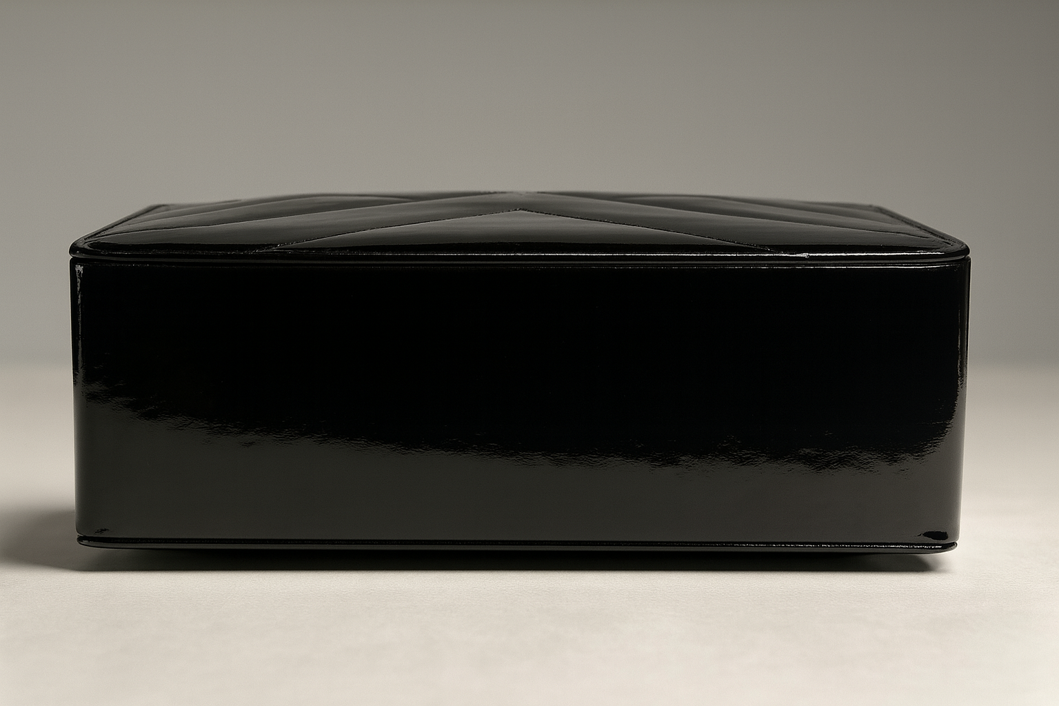 Turn heads with this elegant patent leather handbag, designed for modern sophistication. Featuring a luxurious glossy finish, structured silhouette, and a gold-tone chain strap with buckle closure, this piece is the perfect balance of timeless style and everyday function. Material: Premium patent leather with a smooth sheen Hardware: Polished gold-tone lock closure & chain accents Strap: Adjustable leather strap with chain detail Size: Compact yet spacious enough for essentials
